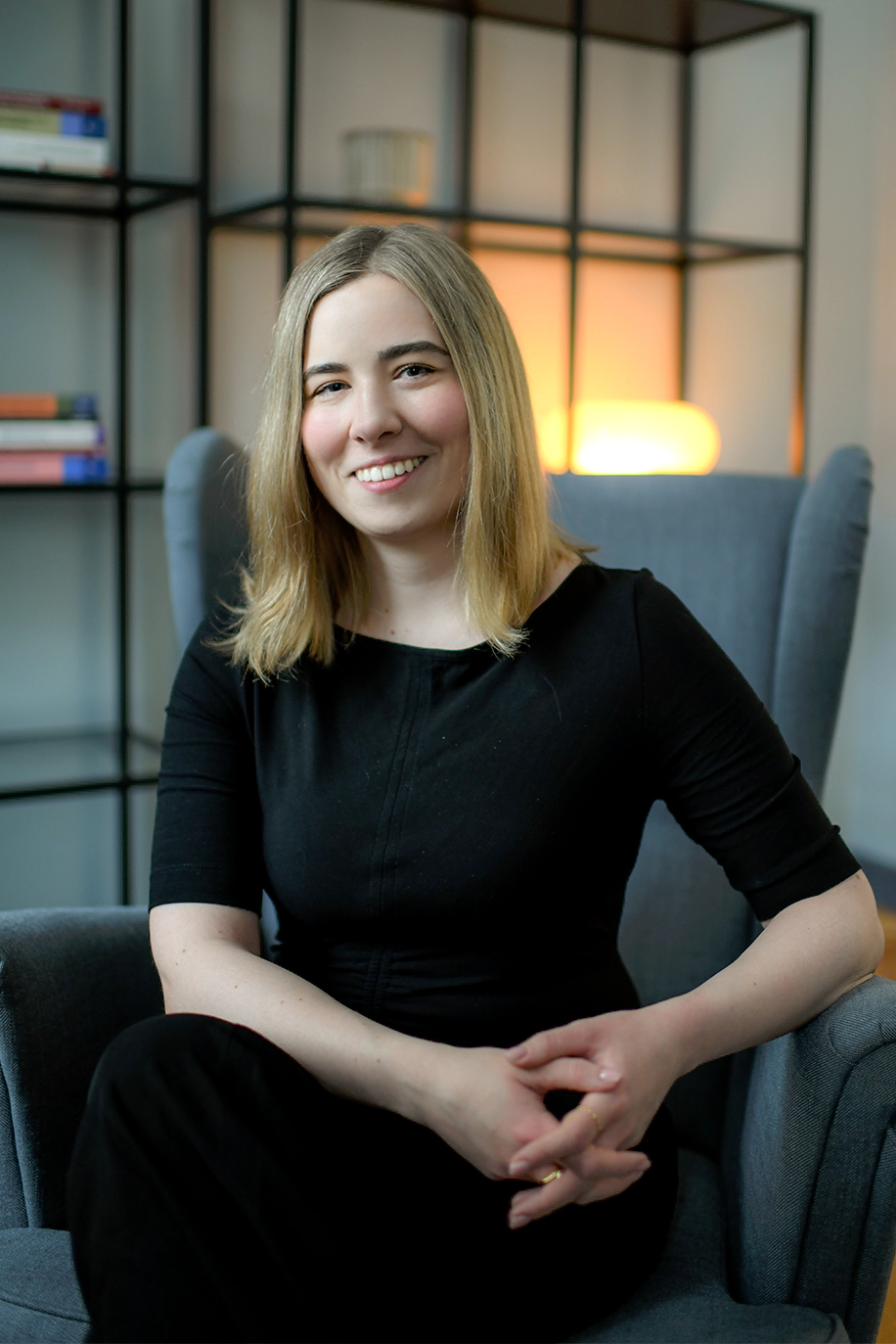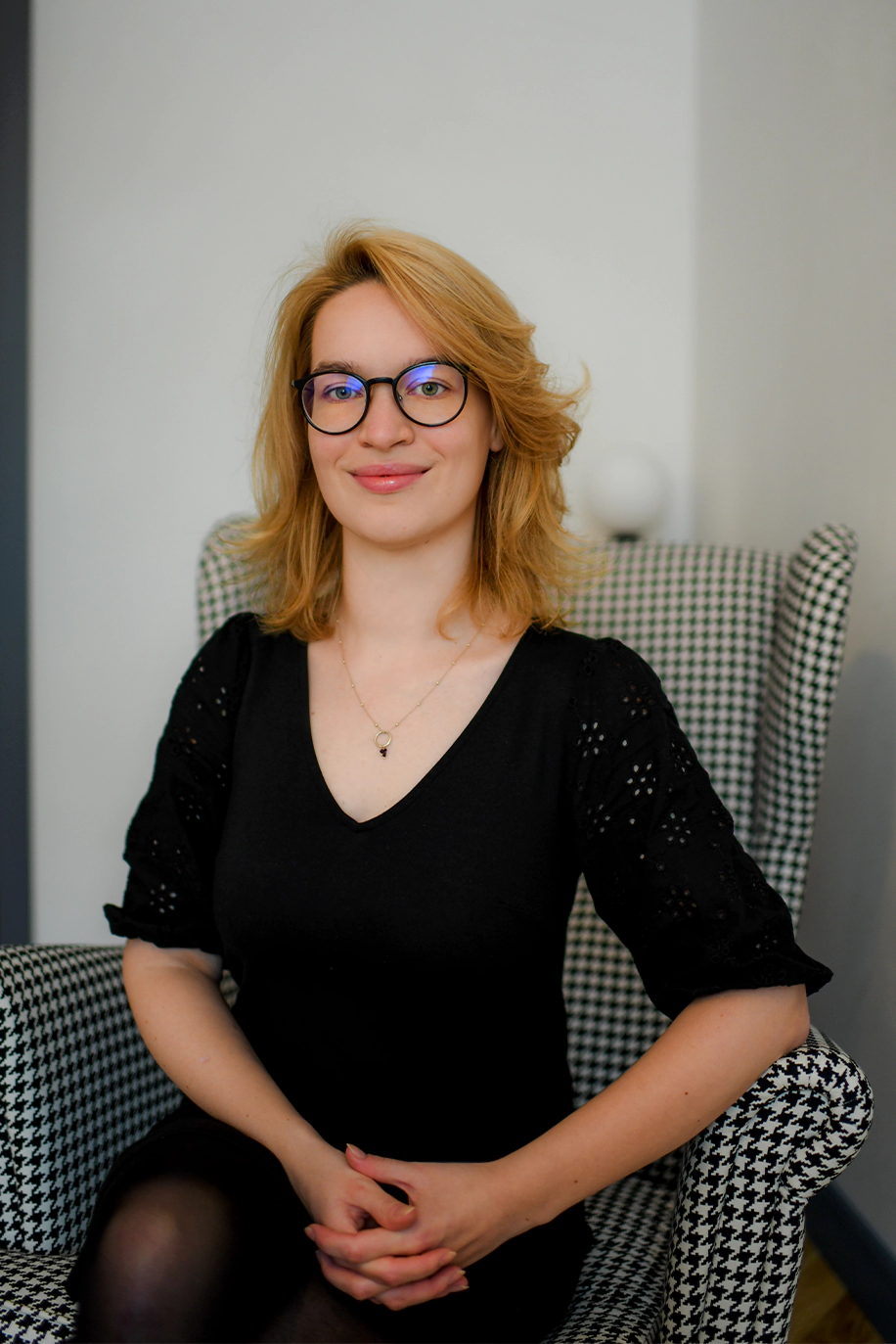 Jest absolwentką psychologii na Uniwersytecie im. Adama Mickiewicza w Poznaniu. Ukończyła także Psychodynamiczne Studium Socjoterapii i Psychoterapii Młodzieży. Posiada dyplom psychoterapeuty – kwalifikacje do prowadzenia psychoterapii uzyskała kończąc 4-letnią szkołę psychoterapii w Krakowskim Centrum Psychodynamicznym, placówce rekomendowanej przez Polskie Towarzystwo Psychologiczne. Posiada doświadczenie w pracy na oddziałach psychiatrycznych zajmujących się diagnozą oraz leczeniem osób, które doświadczają problemów natury psychologicznej oraz psychiatrycznej (Oddział Psychiatryczny Ogólny oraz Oddział Zaburzeń Lękowych i Afektywnych w Klinice Psychiatrii w Bydgoszczy, Ośrodek Interwencji Kryzysowej w Poznaniu, Oddział Chorób Afektywnych w Centrum Zdrowia Psychicznego HCP w Poznaniu). W w/w placówkach udzielała pomocy psychologicznej i terapeutycznej osobom doświadczającym depresji, zaburzeń lękowych, zaburzeń osobowości oraz kryzysów emocjonalnych. Jest członkiem Polskiego Towarzystwa Psychoterapii Psychodynamicznej, swoją pracę poddaje regularnej superwizji.